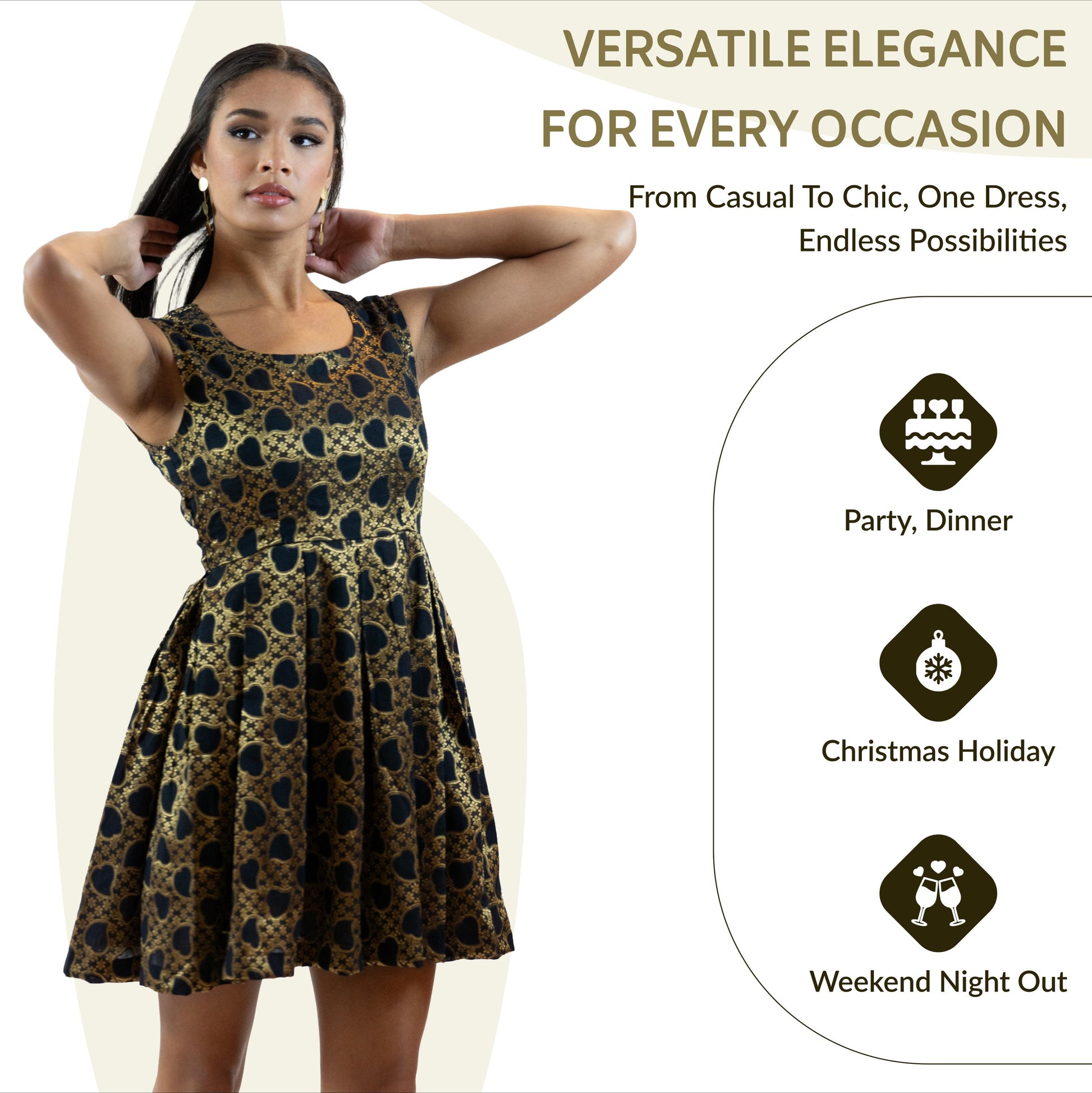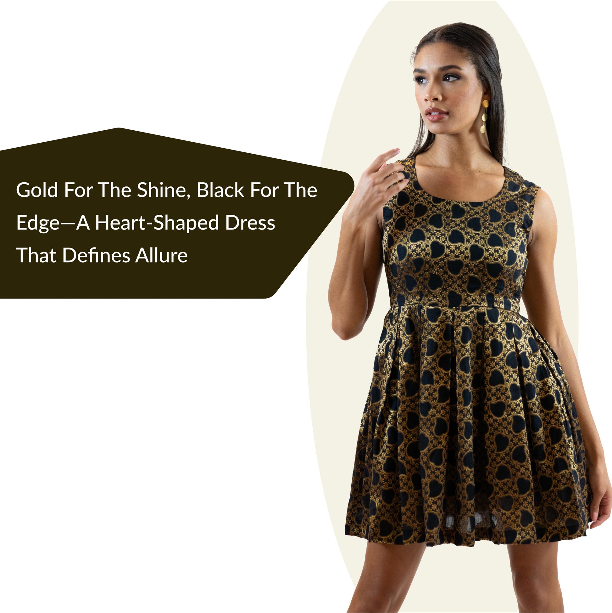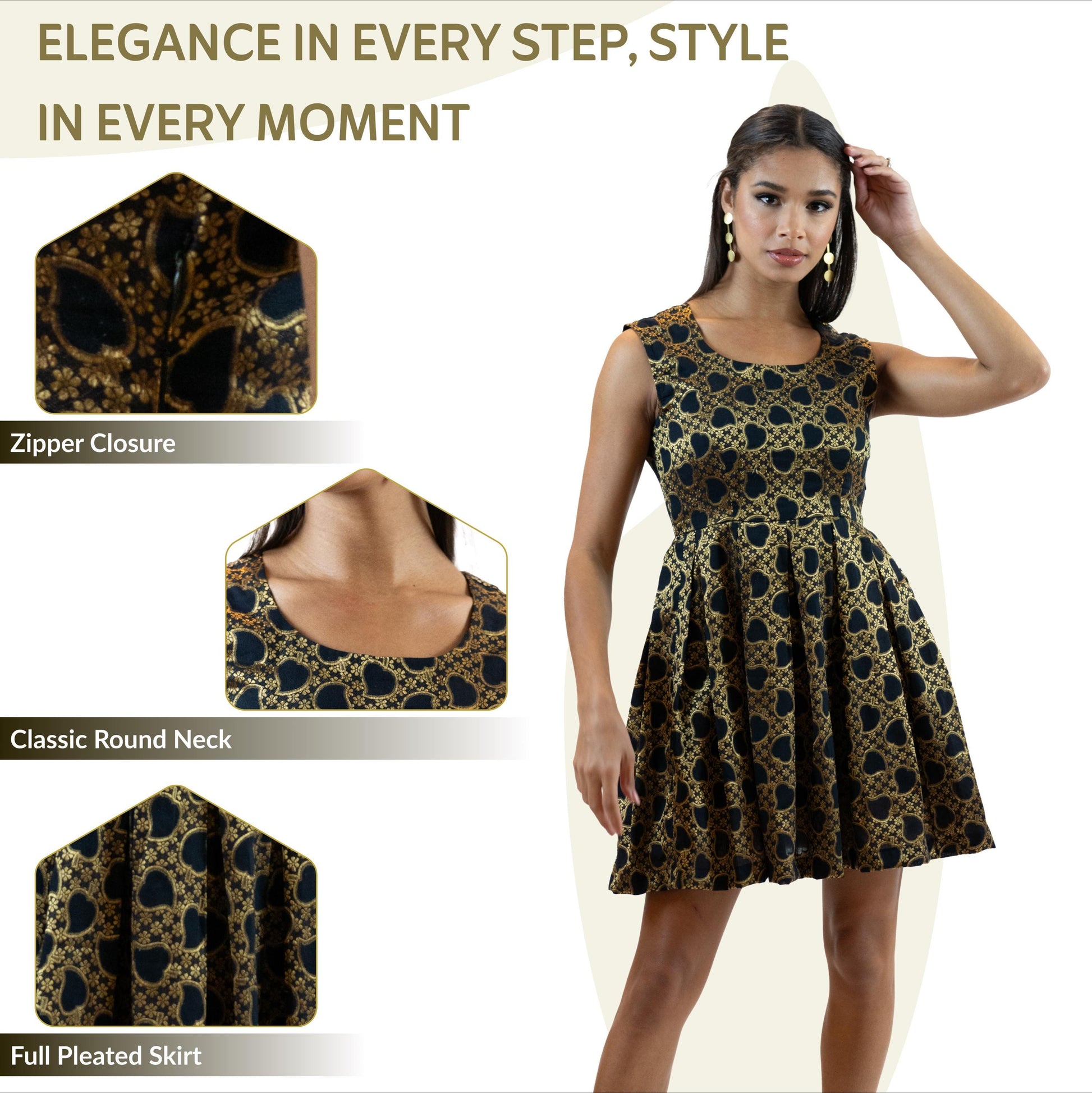 Black Gold Brocade Mini Dress – Sleeveless Party Outfit