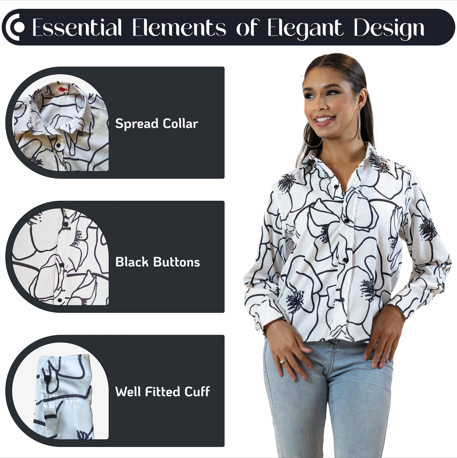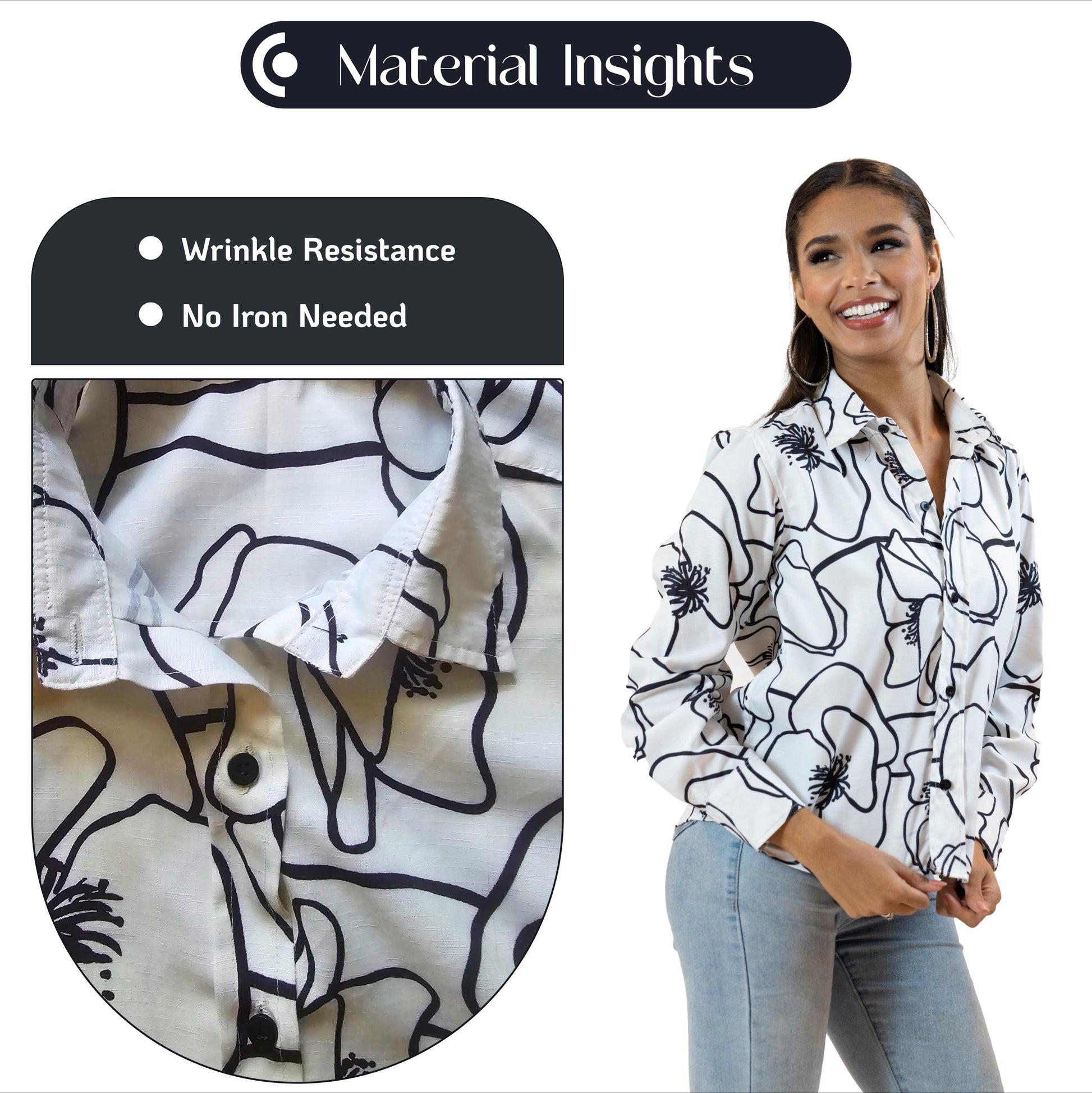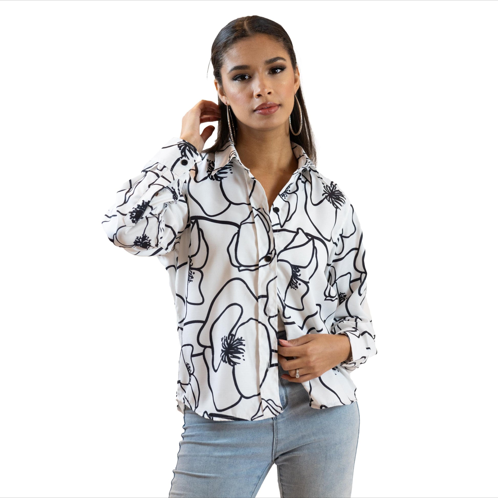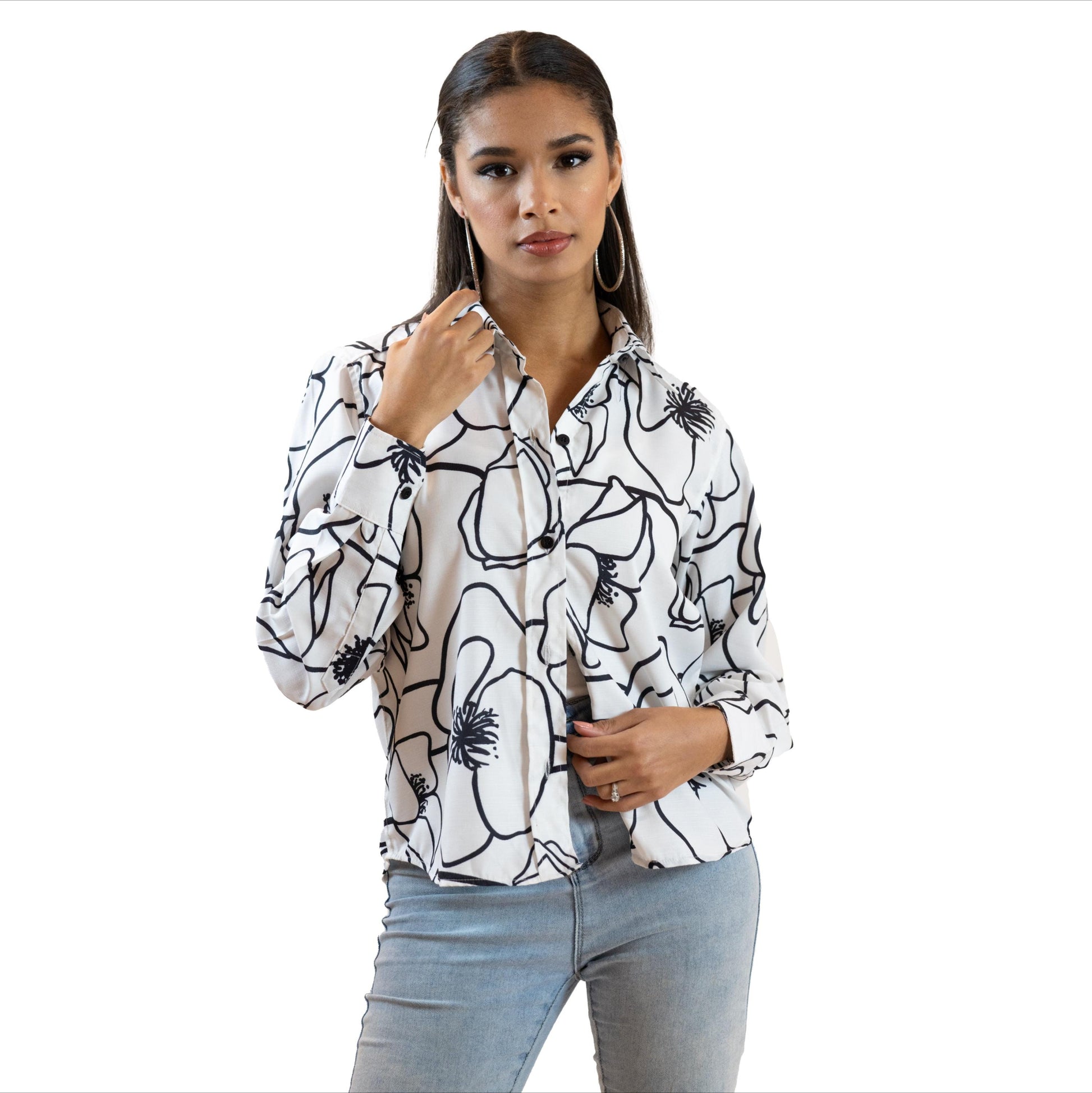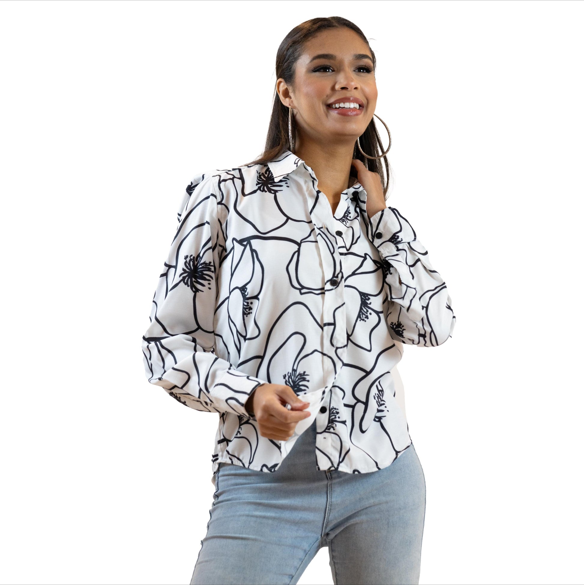 Black & White Line Art Shirt – Long Sleeve Printed Blouse