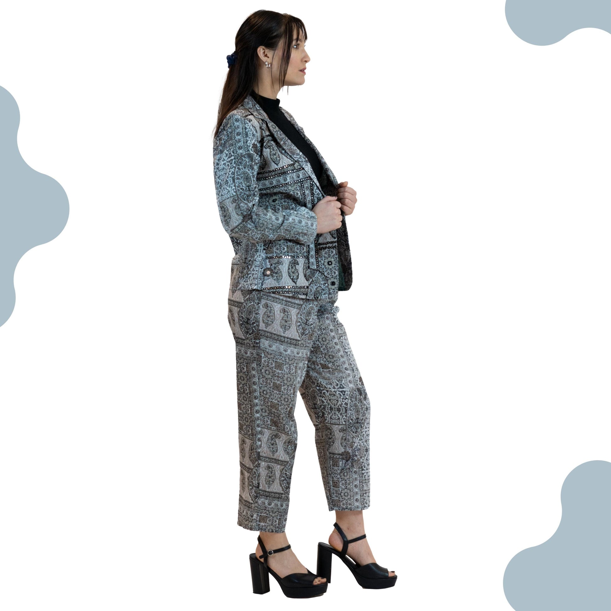 Monochrome Mirror Work Co-Ord Set – Women’s 2 Piece Suit