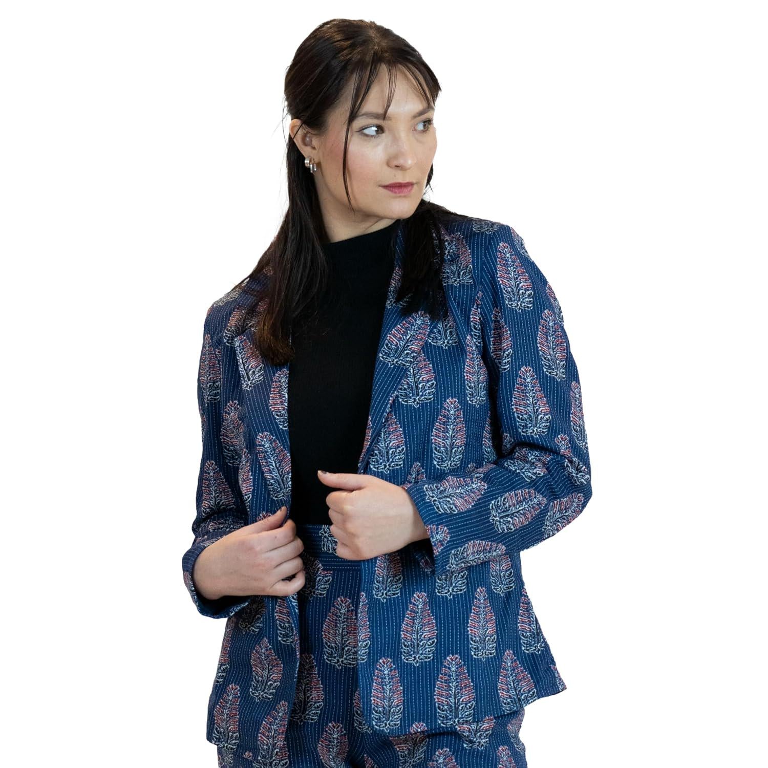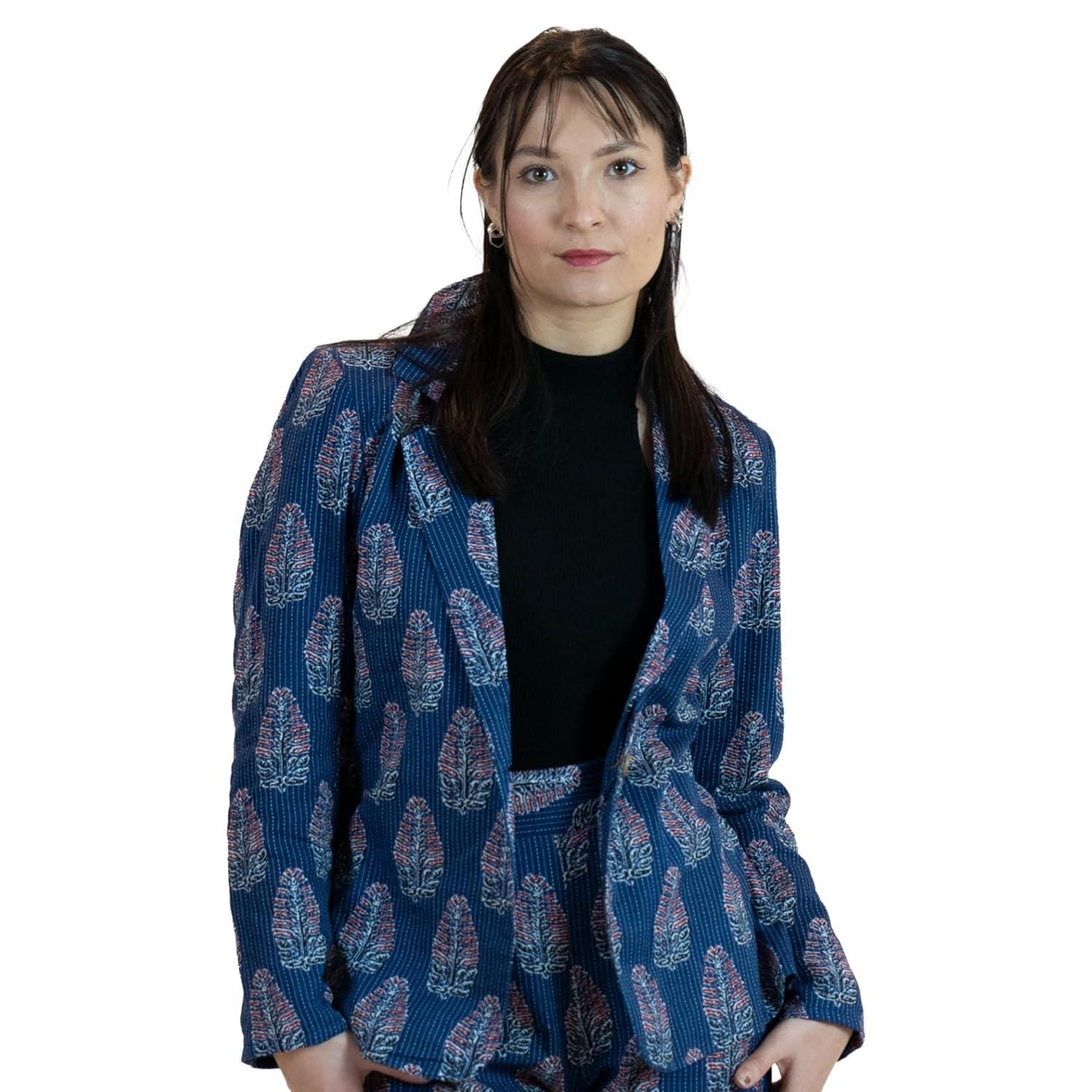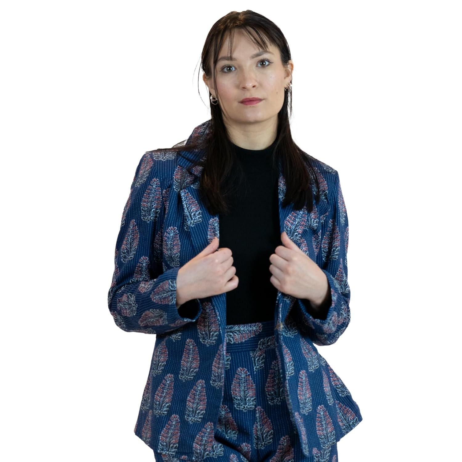 Blue Leaves Floral Blazer – Linen Blend Printed Jacket